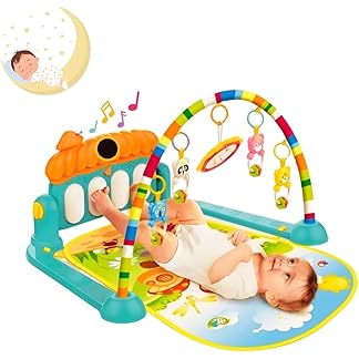 UCRAVO Play Gym Mat for Babies, 5-in-1 Indian Musical Keyboard Mat Piano Mat, Portable Baby Playing Mat for New Born with 5 Hanging Toys, Music & Lights, Indoor Activity for 0 to 12 Months Boys Girls