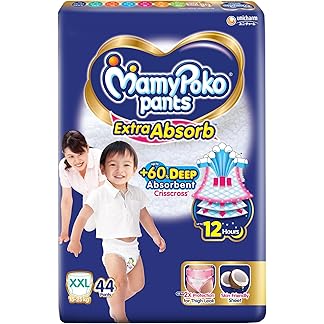 MamyPoko Pants Extra Absorb Baby Diapers, Extra Extra Large (XXL size) | 15-25 kg | 44 Count |Deep Sleep Diapers| Soft gentle fit |Deep Absorbent Crisscross | skin friendly with coconut oil |