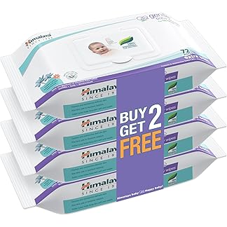 Himalaya Gentle Baby Wipes with Lid (72 wipes x4 packs -288 wipes) |100% Biodegradable Plant-based fabric | Indian Lotus & Aloe Vera | Skin Friendly PH| Extra Soft