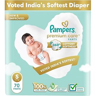 Pampers Premium Care Pant Style Baby Diapers | Small (S size) | 70 Count | Voted India’s Softest | All-in-1 with 360 Cottony Softness Diapers | 4-8kg