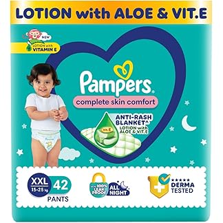Pampers Complete Skin Comfort Pants, Anti-rash blanket, Lotion with Vitamin E & Aloe Vera,Double Extra Large size baby diapers (XXL) 42 Count,15-25kg
