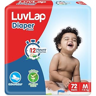 LuvLap Baby Diaper Pants M Size (Medium), with Aloe Vera Lotion for rash protection, Pack of 72 Count, with upto 12Hr protection For babies of 7 to 12Kg