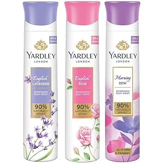 Yardley London Daily Use Deodorant Body Sprays for Women| English Lavender, English Rose, & Morning Dew Deodorant Assorted Pack| 90% Naturally Derived| 150ml Each
