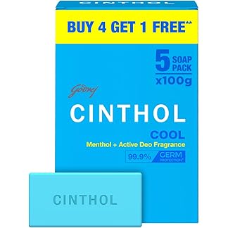 Cinthol Cool Soap, 100g (Pack of 5) | with Icy-cool Menthol | Soaps For Bath | Grade 1 Soap | For All Skin Types