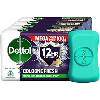 Dettol Cologne Fresh Bathing Soap Bar with 12hr Freshness 100g Pack of 4, (400gm)