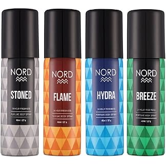 NORD Intense Deodorant sprey Travel Pack Gift Set for Men with Flame, Breeze, Hydra and Stoned Mini Deodorants for Men, Pack of 4 (40ml each) | Gift for Men