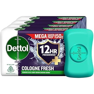 Dettol Cologne Fresh Bathing Soap Bar with 12hr Freshness 150g Pack of 4, (600gm)