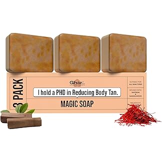 Ghar Soaps Sandalwood & Saffron Magic Soaps For Bath (300 Gms Pack Of 3) | Paraben Free | Chandan & Kesar Bath Soap | Handmade Soaps For Glowing | Skin Brightening Soap For Men & Women