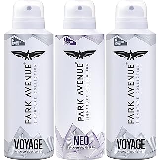 Park Avenue Men Voyage & Neo Signature Collection | Deodorant Spray | Fresh Long-Lasting Aroma | 150Ml Each (Pack Of 3), 450 Millilitres
