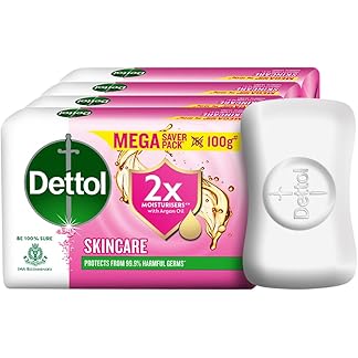 Dettol Skincare Moisturizing Beauty Bathing Soap Bar with Argan Oil (400gm) | Softer Skin, 100gm, Pack of 4