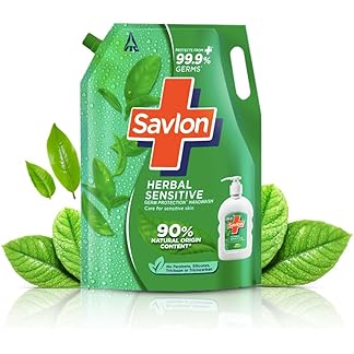 Savlon Herbal Sensitive Germ Protection Liquid Handwash, 1500ml Hand wash Refill, 90% Natural Origin, For Sensitive Hands