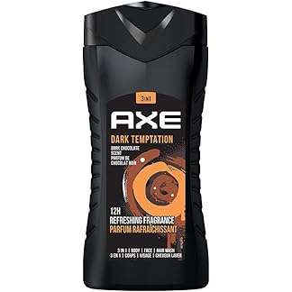 AXE Dark Temptation 3 In 1 Body, Face & Hair Wash for Men, Long-Lasting Refreshing Dark Chocolate Fragrance, Natural Origin Ingredients, Removes Odor & Bacteria, Dermatologically Tested 250ml