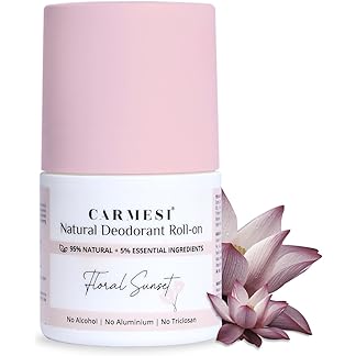 Carmesi Natural Underarm Roll On Deodorant for Women | 95% Natural + 5% Essential Ingredients | For Fresh Underarms All Day | No Alcohol & Aluminium | Floral Sunset | 50 ml