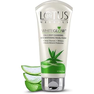 Lotus Herbals Whiteglow 3 In 1 Deep Cleaning Skin Whitening Facial Foam | Chemical Free | With Milk Enzymes & Aloe Vera Gel | For All Skin Types | 100g