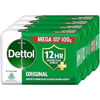 Dettol Original Bathing Soap Bar with 12 HR protective shield (400gm) | Kills 99.99% Germs, 100g (Pack of 4)