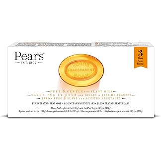 Pears Pure & Gentle Soap Bar (Combo Pack of 3) – With Glycerin for Soft, Glowing Skin & Body, Paraben-Free Body Soaps For Bath Ideal for Men & Women