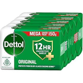 Dettol Original Bathing Soap Bar with 12 HR protective shield (750gm) | Kills 99.99% Germs, 150g (Pack of 5)