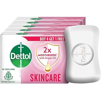 Dettol Skincare Moisturizing Beauty Bathing Soap Bar (625gm)| With 2x moisturizers & Argan Oil| Softer Skin , 125gm – Pack of 5
