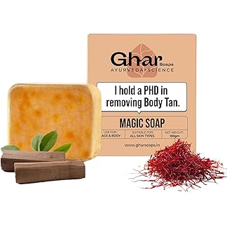 Ghar Soaps Sandalwood & Saffron Magic Soaps For Bath (100 Gms Pack Of 1) | Paraben Free | Chandan & Kesar Bath Soap | Handmade Soaps For Glowing | Skin Brightening Soap For Men & Women