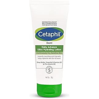 Cetaphil DAM Daily Advance Ultra Hydrating Lotion for Dry, Sensitive Skin| 30 g| Moisturizer with Shea Butter| Non-Greasy, Fragrance-Free| Paraben, Sulphate Free
