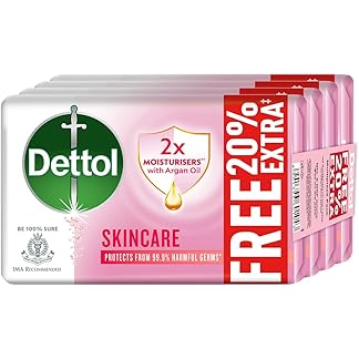 Dettol Skincare Moisturizing Beauty Bathing Soap Bar with Argan Oil (600gm) | Softer Skin, 125gm + 20% Extra Free, Pack of 4