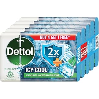 Dettol Icy Cool Bathing Soap Bar With 3x intense cooling (625gm), 125gm – Pack of 5