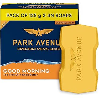 Park Avenue Premium Men’s Soaps for Bath – Good Morning | 125g (Pack of 4) | Enriched with Tea Tree Oil & Shea Butter | Grade 1 Soap | For All Skin Types