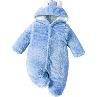 BABYZONE Fleece Footed Snowsuit Newborn Hooded Rompers Long Sleeve Onesies Button Closure Warm Infant Winter Outfits,Baby Boys Girls Snowsuit Pajamas Cute Bear Ear Bodysuits Outwear.