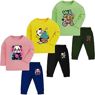 TS LAVI TAVI Trendy Printed Unisex Cotton Apparel Full Sleeve T-Shirt Pyjama Track Pant Combo for New Born Baby Kids Boy and Girl Clothing Set (Pack of 3)