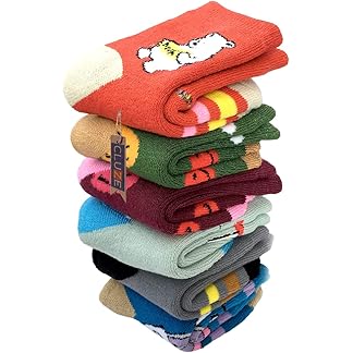 CLUZE Winter Warm Socks for Kids Toddlers Boys Girls Thick Thermal Woolen Socks Terry Lined Cozy Ankle Socks for Children (Pack of 6 Pairs)