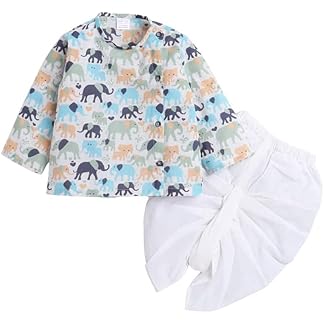 LuvLap Unisex Kid Cotton Printed Jhabla & Shorts Set