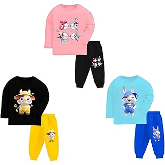TS LAVI TAVI Trendy Printed Unisex Cotton Apparel Full Sleeve T-Shirt Pyjama Track Pant Combo for New Born Baby Kids Boy and Girl Clothing Set (Pack of 3)