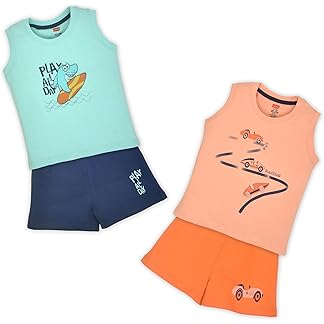 Lofn Unisex-Child Cotton Clothing Sets for Baby Boys & Baby Girls Printed Kids Clothing Sets – Unisex Clothing sets Half sleeve T-Shirt & Shorts Pack Of 3 (T84OR-T70WH-18-T83CP)