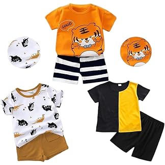 Lofn Cotton Clothing Sets for Baby Boys & Baby Girls – Unisex Clothing sets Half sleeve T-Shirt & Shorts Pack Of 3 KDST78CP-KDST84OR-KDST31MT