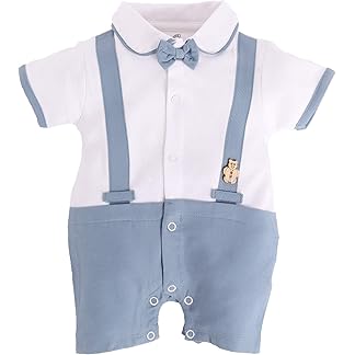 BLECKZ SOMEAK Baby Boys Cotton and Spandex Printed Half Sleeves Applique Bow Solid Romper