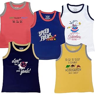 Totz Touch Boys Regular Fit Sleeveless T Shirt / Tees / Vest / Baniyan | Pure Cotton 180 Gsm | Kids Casual Round Collar Tshirts (Pack 5 | Size Options – 0-6 Months / 12-24 Months / 2-3 Years / 3-4 Years / 4-5 Years)