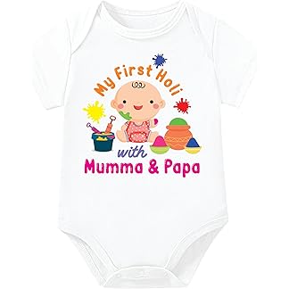 Lillypupp My first Holi baby dress for boy girl. Unisex monthly milestone Holi t-shirt romper Bodysuit for new born photoshoot.