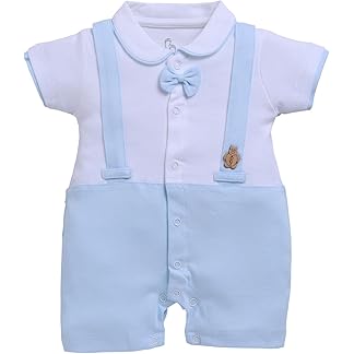 BLECKZ SOMEAK Baby Boys Cotton and Spandex Printed Half Sleeves Applique Bow Solid Romper