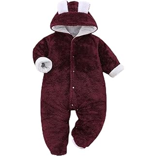 BABYZONE Fleece Footed Snowsuit Newborn Hooded Rompers Long Sleeve Onesies Button Closure Warm Infant Winter Outfits,Baby Boys Girls Snowsuit Pajamas Cute Bear Ear Bodysuits Outwear.