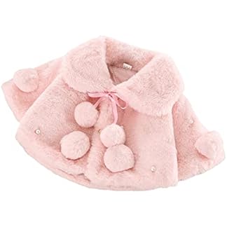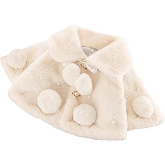 Bold N Elegant Wool Faux Fur Warm Winter Outerwear Baby Jacket Cape Coat Poncho Wrap with Soft Plush Pompom and Pearls for Infant Toddler Baby Girls kids