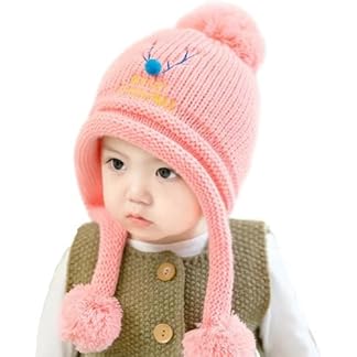 Baby Kids Winter Hat Cute Design Beanie Velvet Fur Knitted Woolen Cap Two Layers Warm Fabric with Pom Pom Ear Warmer for Baby Girl (Age 2-6 Yrs)