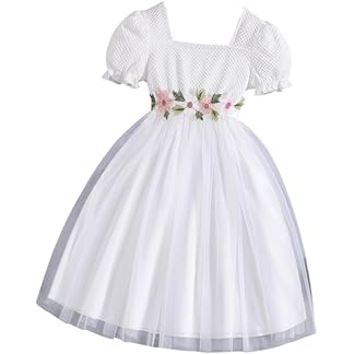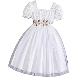 Niren Enterprise Floral Embroidery Work Belt Short Sleeve Square Neck Boxer and net Flared Baby Girl Frock, Pack of 1