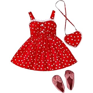 SCARFHAVEN Baby Girls’ Pure Cotton Midi Length Trendy Red Heart Print Dress with Matching Purse