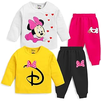 Kuchipoo Baby Girl Regular Fit Cotton T-Shirts and Pyjamas Set (© Disney-PSUT-103