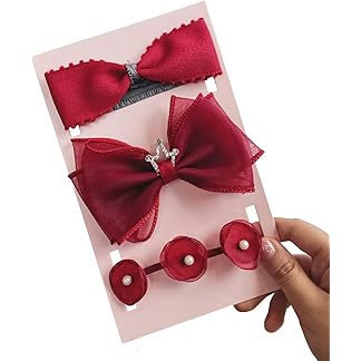 SYGA 3 Pcs Children Girl Baby Elastic Hairband Princess Wind Bow Flower Headband Suit Baby Headdress Photo Hair Accessories For 0-3 Years, Red