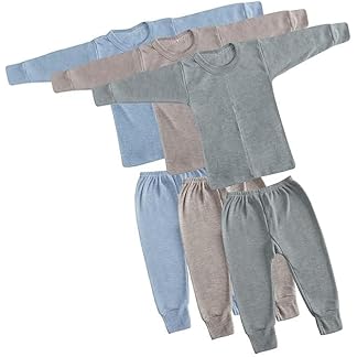 GOLURK Baby Boy and Baby Girls Full Sleeves Soft Thermal T-Shirt with Pyjama Pants Dress for Kids Infant Toddler Casual New Born Baby Clothes 3-Set Thermal for Winters Wear Multicolor