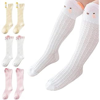SNOWIE SOFT® 3 Pairs Baby Girls Stocking Polyester Cotton Mesh Stocking Knee High Breathable Summer Stockings Cartoon Baby Stockings Gift for Baby Girls 0-3 Years Old