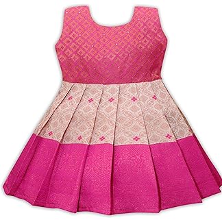 PW PLATYPUS WORLD South Indian Traditional Pattu Pavadai Jacquard Frock Dress for Baby Girls