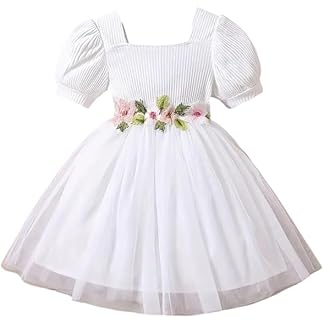 TAGAS Toddler Girls Polka Dot Ruffle Trim Belted Mesh Dress Floral Pattern Frock for Girls (KD-1015)