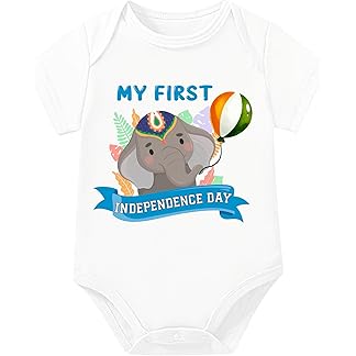 Lillypupp My first Independence day unisex organic cotton white romper onesie for boy girl. Newborn baby dress outfit for infant toddler.